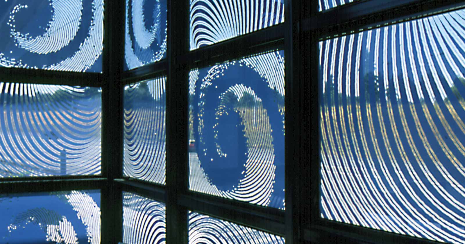 System-wide artwork by design team artists Christine Bourdette and Vicki Scuri includes the swirling wind patterns in ceramic frit featured on the station windscreens and the shelter canopy which borrows its form from an airplane wing.